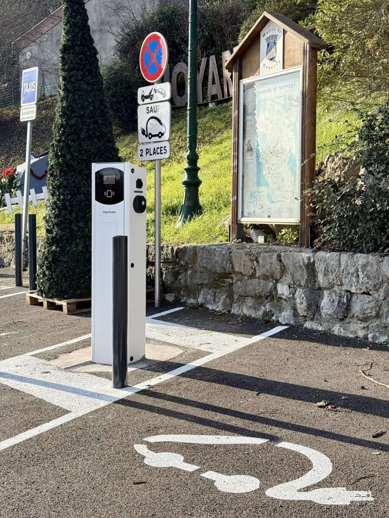 La municipalité a le plaisir de vous annoncer la mise en service de la toute première borne de recharge publique pour véhicules électriques à Noyarey.